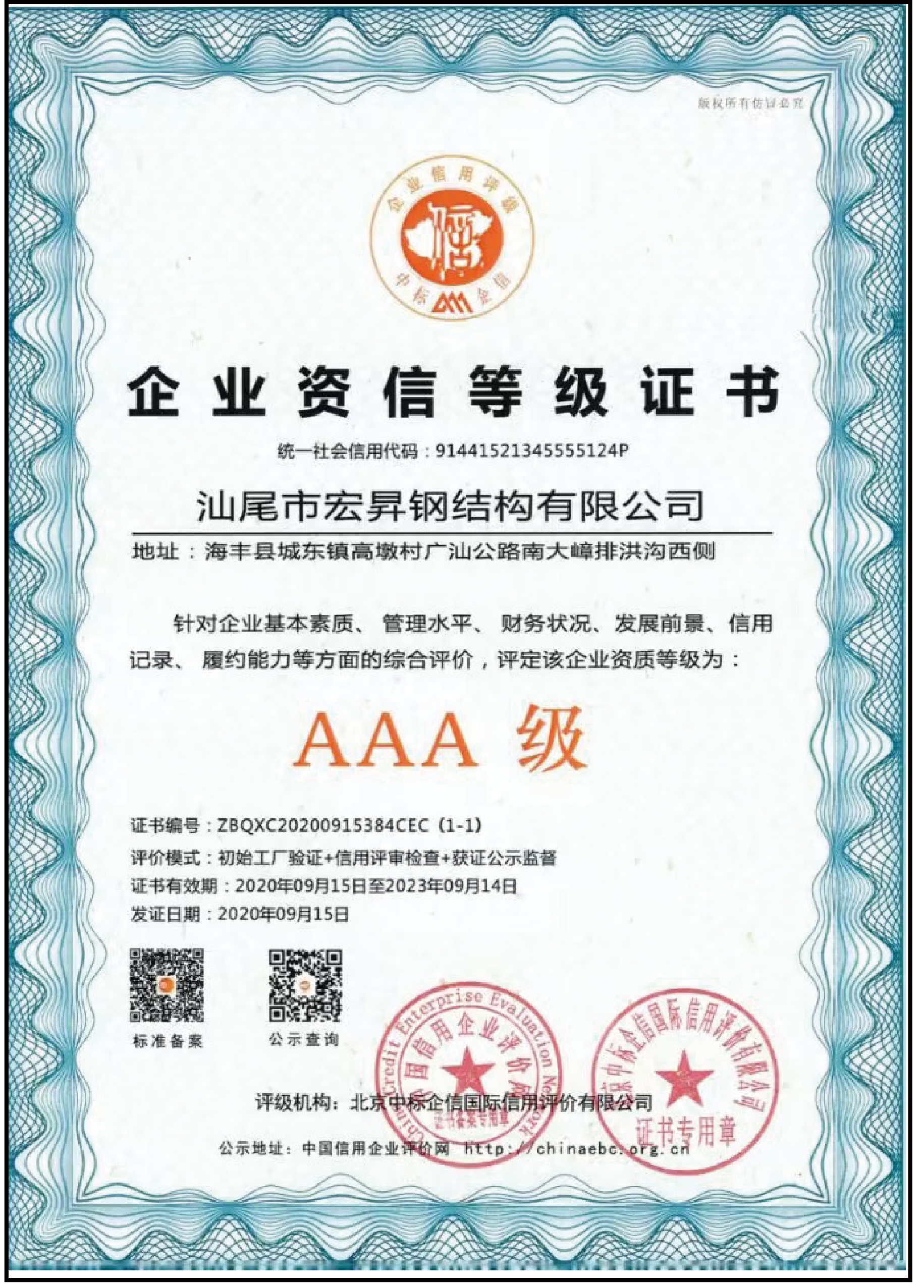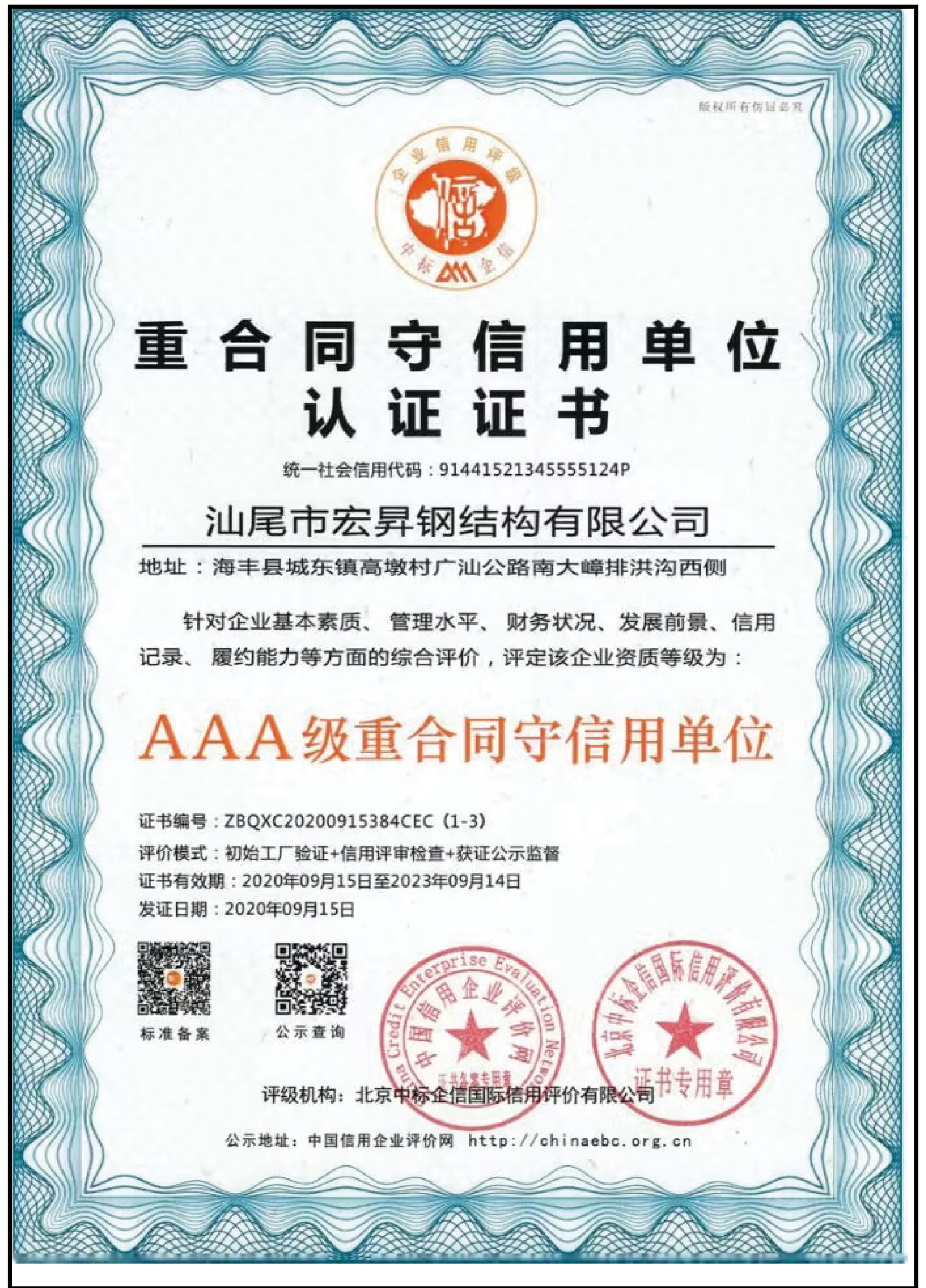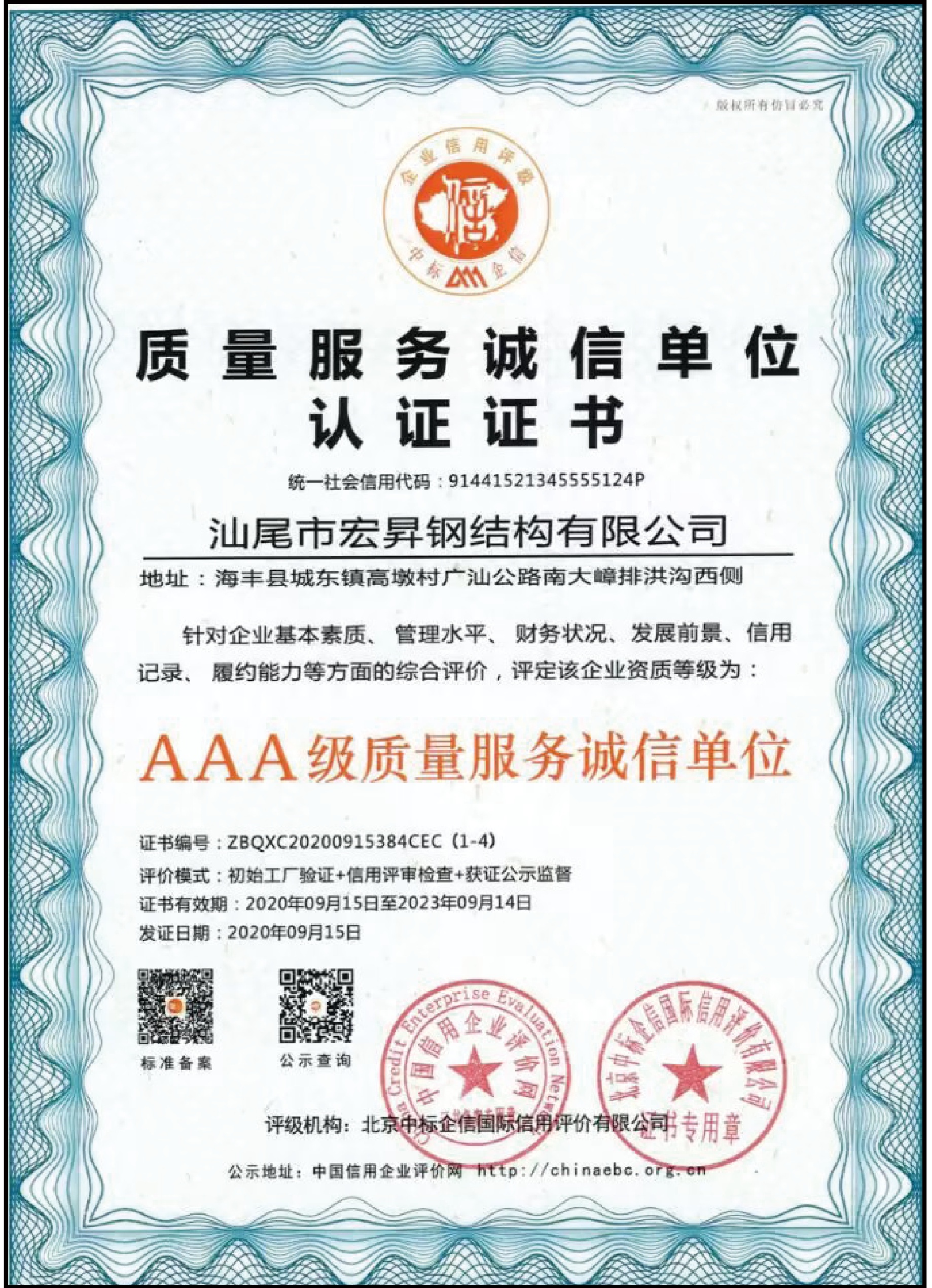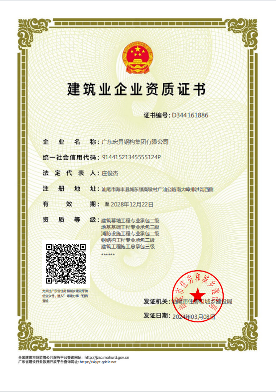 公司注冊資金8088萬元,取得國家高新技術企業(yè)、專精特新、創(chuàng)新型技術等多項榮譽資質(zhì)。擁有“鋼結構施工承包二級”“玻璃幕墻專業(yè)承包二級”“房屋建筑工程總承包”等資質(zhì)。在汕尾市、惠州市擁有鋼結構加工和維護系統(tǒng)三個生產(chǎn)基地,廠房占地面積15萬平方米,年生產(chǎn)鋼結構件達8萬噸,維護系統(tǒng)生產(chǎn)200萬平方米。公司通過國家IS09001-2001質(zhì)量管理體系、GB/T280012001職業(yè)健康衛(wèi)生管理體系和IS0140012004環(huán)境管理體系認證,確保產(chǎn)品質(zhì)量和服務水平始終處于行業(yè)前列。