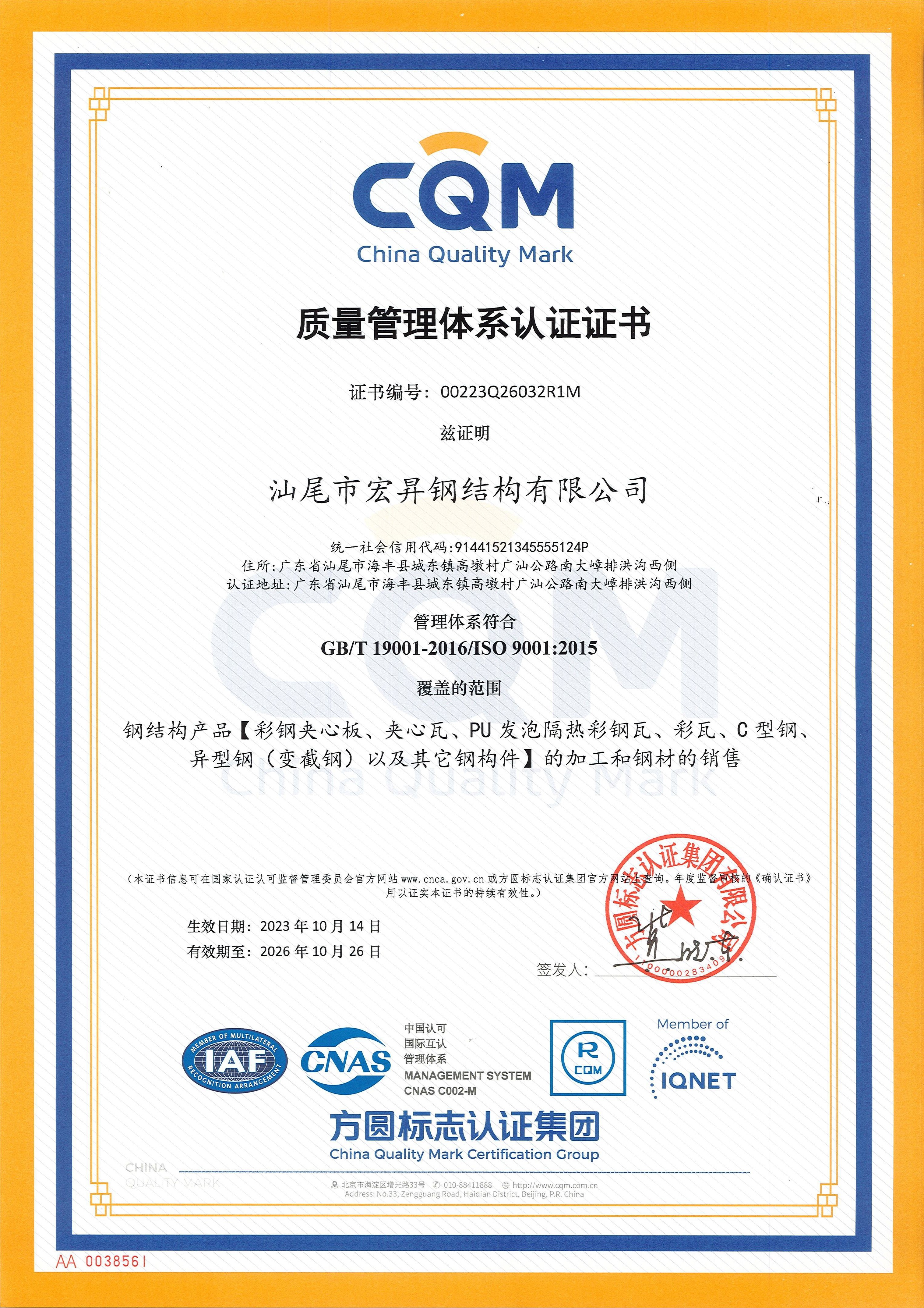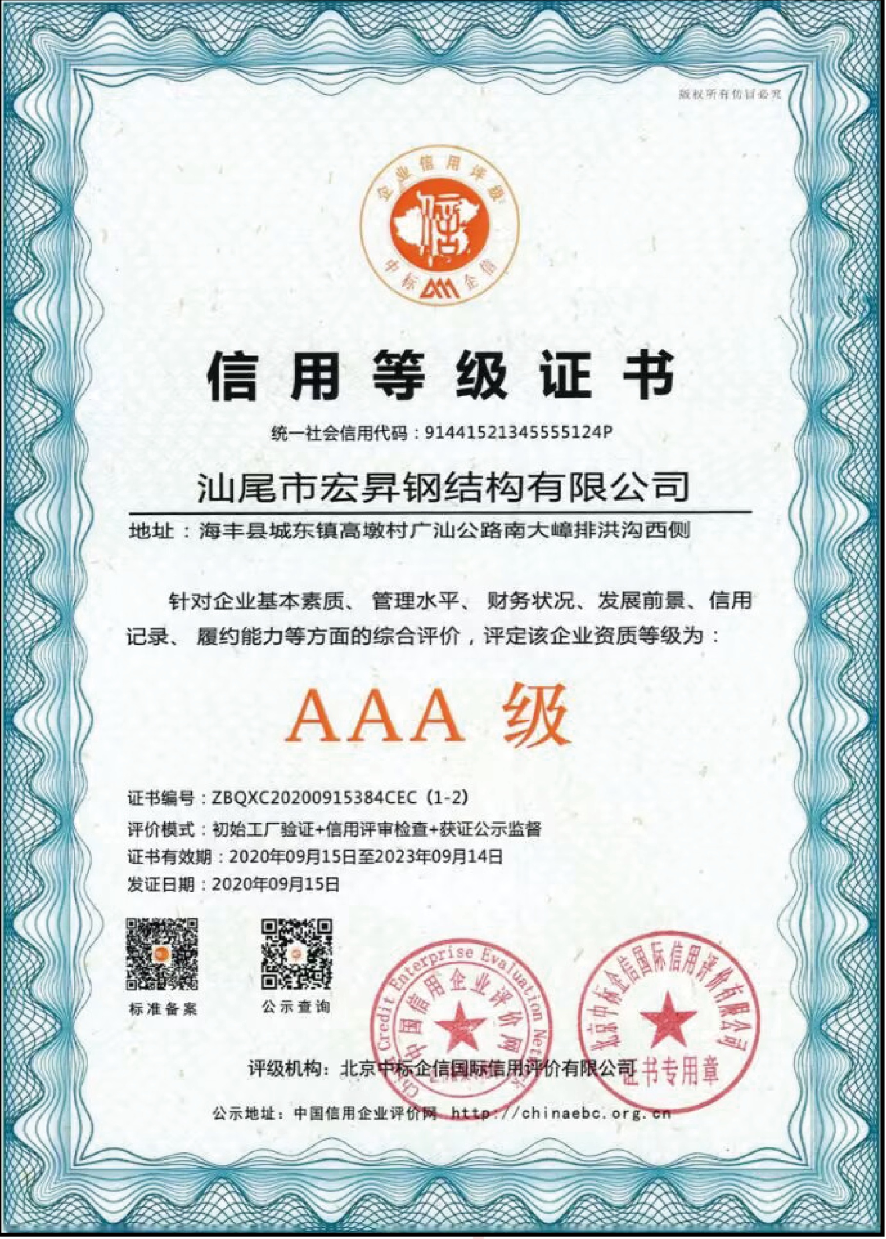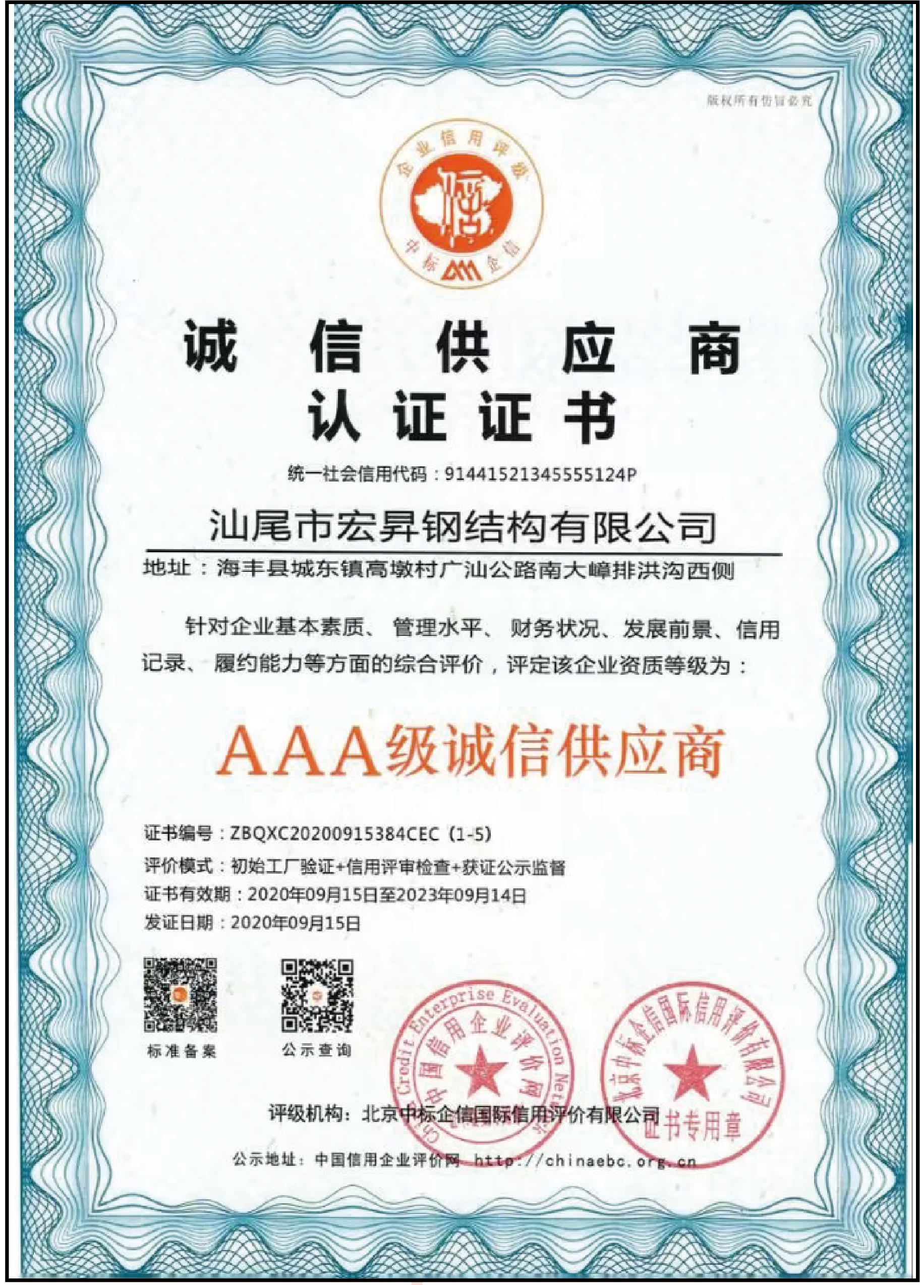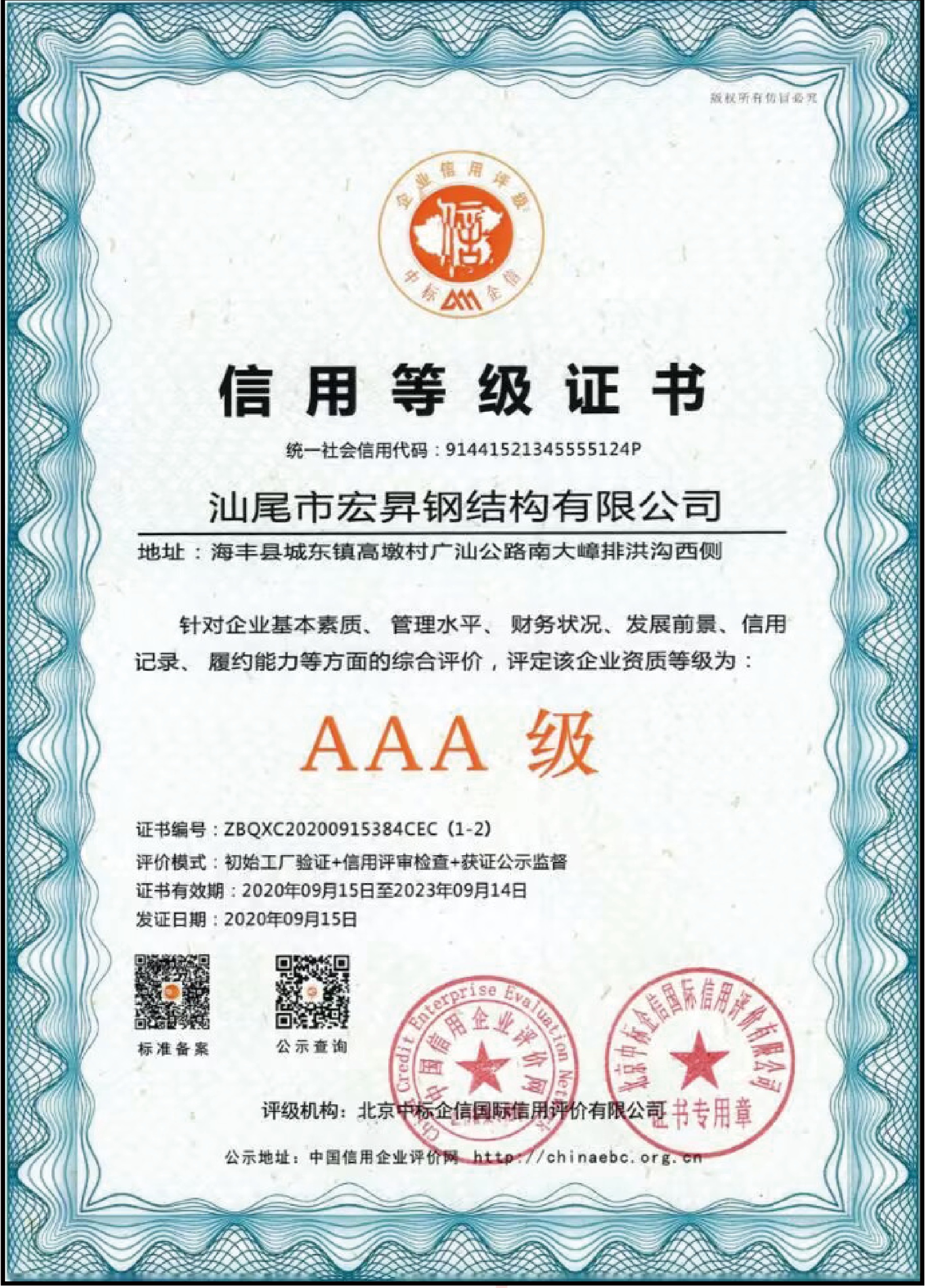 公司注冊資金8088萬元,取得國家高新技術企業(yè)、專精特新、創(chuàng)新型技術等多項榮譽資質(zhì)。擁有“鋼結構施工承包二級”“玻璃幕墻專業(yè)承包二級”“房屋建筑工程總承包”等資質(zhì)。在汕尾市、惠州市擁有鋼結構加工和維護系統(tǒng)三個生產(chǎn)基地,廠房占地面積15萬平方米,年生產(chǎn)鋼結構件達8萬噸,維護系統(tǒng)生產(chǎn)200萬平方米。公司通過國家IS09001-2001質(zhì)量管理體系、GB/T280012001職業(yè)健康衛(wèi)生管理體系和IS0140012004環(huán)境管理體系認證,確保產(chǎn)品質(zhì)量和服務水平始終處于行業(yè)前列。