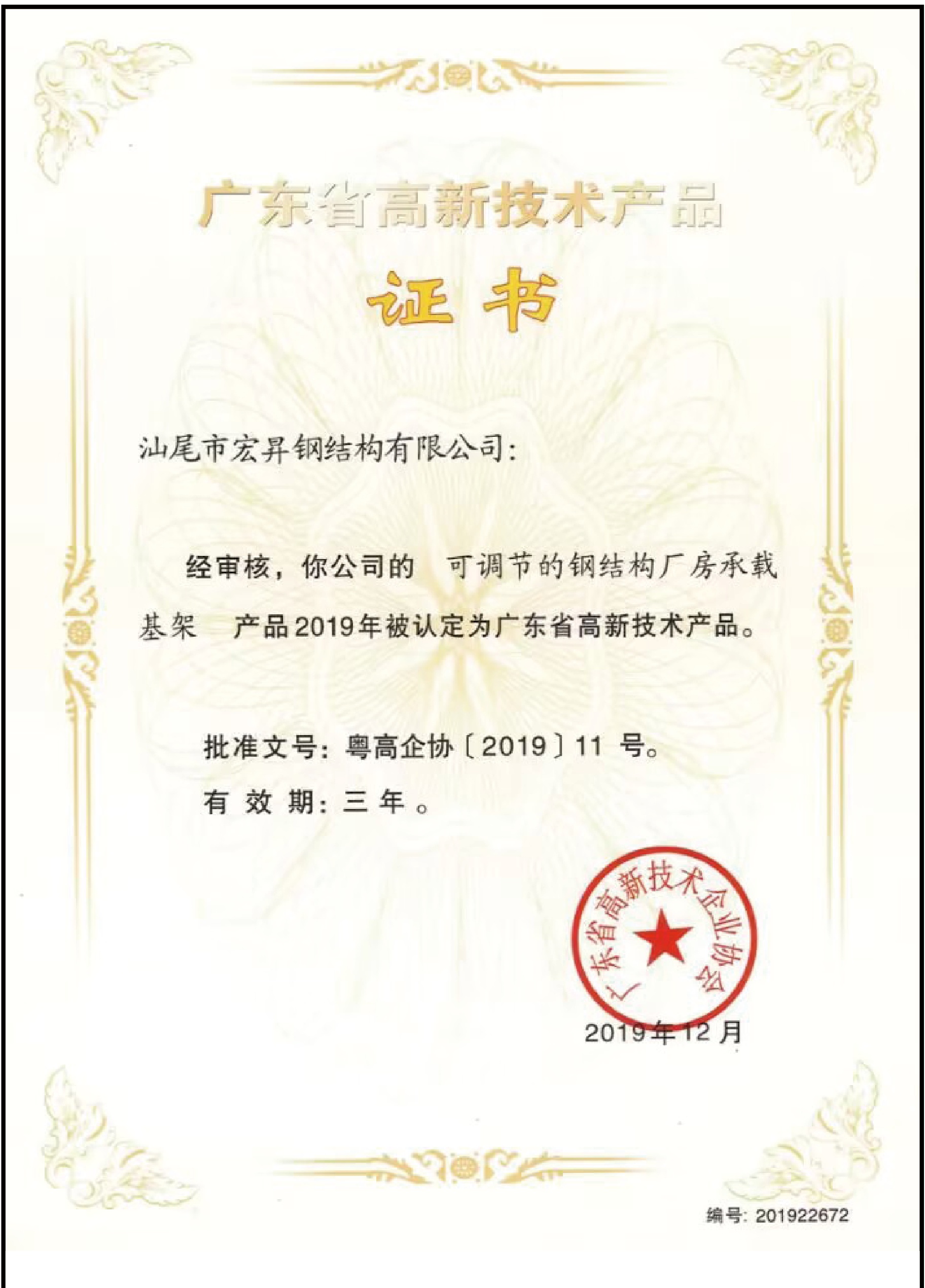 可調(diào)節(jié)的鋼結構廠房承建基架獲高新技術認證